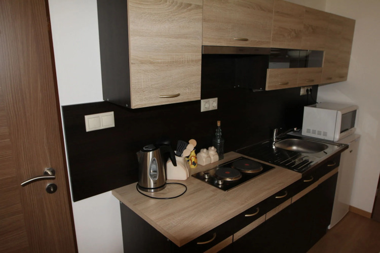 Для тех, кто не представляет отдых без водных удовольствий, есть бассейн. Удобно для гостей с ограниченными возможностями: на верхние этажи гостей поднимает лифт. А ещё в распоряжении гостей прачечная, химчистка и прокат автомобилей. Персонал апартаментов говорит на английском и русском.