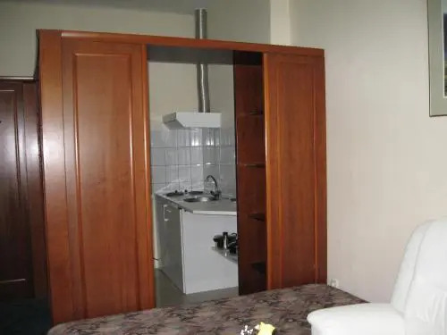 В номере вы найдёте душ и телевизор. Оснащение зависит от выбранной категории номера.