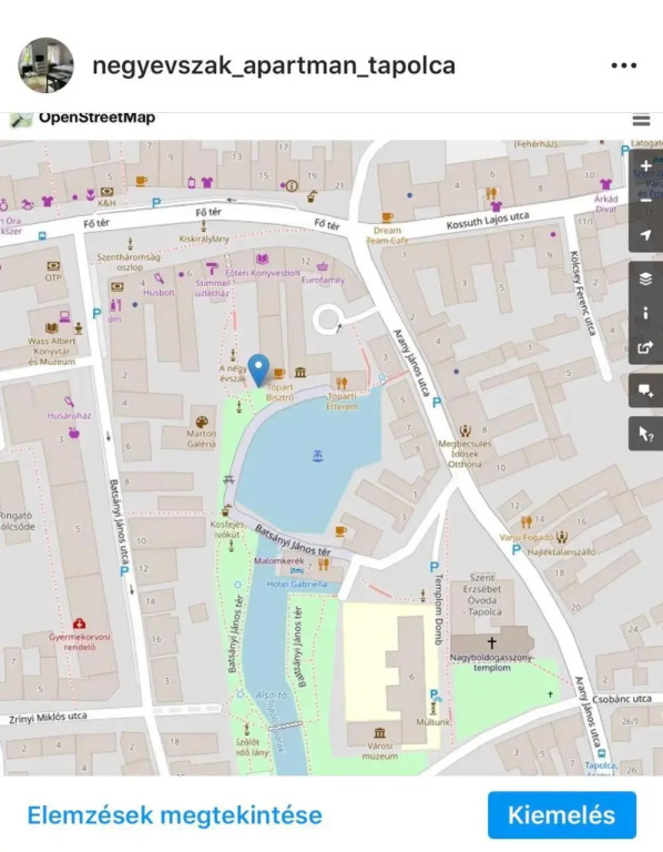 Отель Négy évszak Apartman- Tapolca 1 звезда, адрес на карте Тапольца, 10 Fő Tér 2 Ajtó, 8300, Tapolca, Hungary, с описанием номеров и возможностью онлайн бронирования на площадке vashotel.ru , стоимость проживания и удобства.
