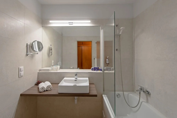 Также для гостей в отеле: массажный кабинет, сауна, солярий и паровая баня. Любителям спорта подготовили фитнес-центр, настольный теннис и мини-гольф. Скучно не будет, ведь в отеле к услугам отдыхающих боулинг. Любители водных процедур оценят бассейн.