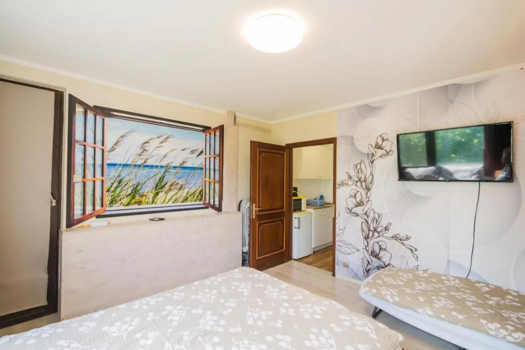 В номере вы найдёте душ и телевизор. Оснащение зависит от выбранной категории номера.