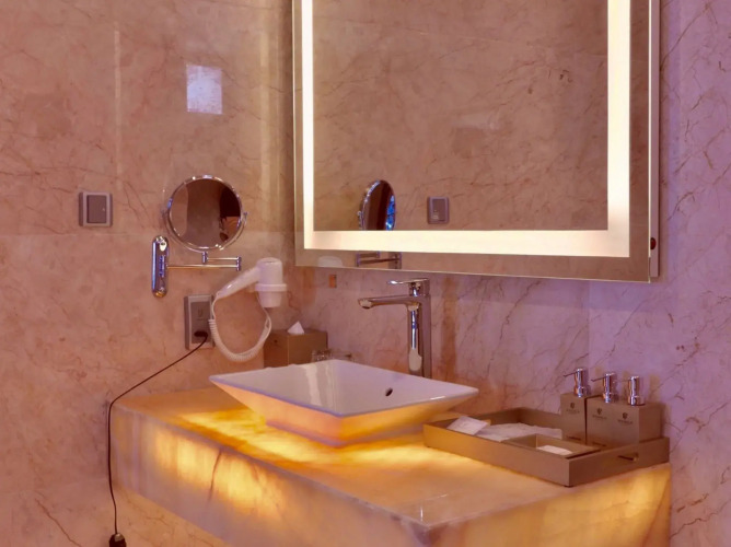 Номер уютно обставлен и оснащён необходимым, чтобы отдохнуть после долгого и насыщенного дня. Имеются телевизор, мини-бар, халат и тапочки. Перечисленные услуги есть не во всех номерах.