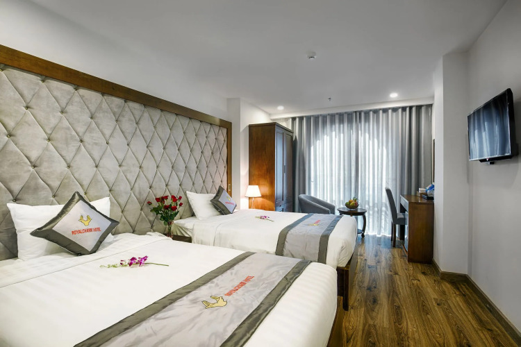 Отель, где хорошо отдыхать перед долгими прогулками. Отель «Royal Charm Hotel» находится в Дананге. Этот отель расположен в 4 км от центра города. Рядом с отелем можно прогуляться. Неподалёку: Пляж Майхе.