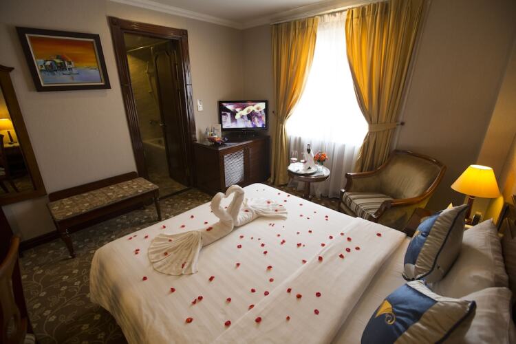 Чтобы вы могли отдохнуть после долгого дня, в номере есть душ, телевизор, мини-бар, халат и тапочки. Оснащение зависит от выбранной категории номера.