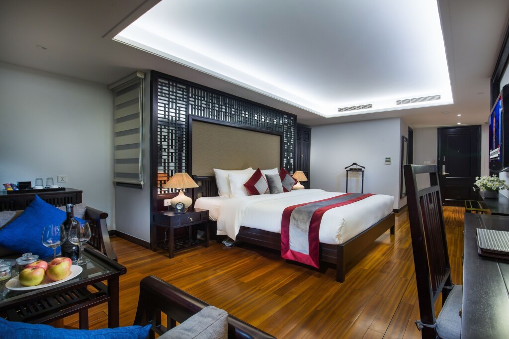 На территории отеля работает 2 ресторана. Вы можете насладиться изысканными блюдами вьетнамской и европейской кухни. В баре можно попробовать вкусные напитки и послушать живую музыку по выходным. С утра для вас накрывается бесплатный сытный завтрак по системе “шведский стол”.