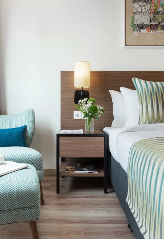 Номер уютно обставлен и оснащён необходимым, чтобы отдохнуть после долгого и насыщенного дня. Имеются телевизор, мини-бар и тапочки. Оснащение зависит от выбранной категории номера.