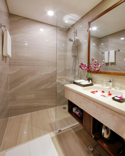 Номер уютно обставлен и оснащён необходимым, чтобы отдохнуть после долгого и насыщенного дня. Имеются будильник, душ, мини-бар, халат и тапочки. Оснащение зависит от выбранной категории номера.