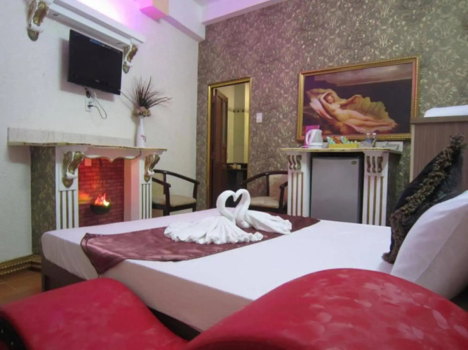 В номере вас будут ждать душ, телевизор и тапочки. Оснащение зависит от выбранной категории номера.