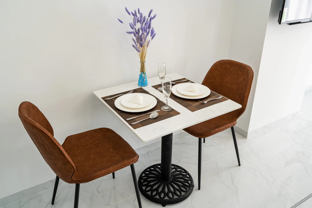 Номер уютно обставлен и оснащён необходимым, чтобы отдохнуть после долгого и насыщенного дня. Имеются душ, телевизор и тапочки. Оснащение зависит от выбранной категории номера.