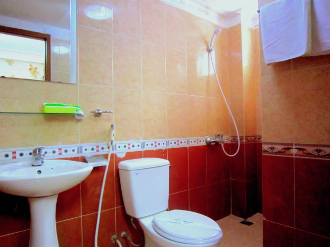 В номере вы найдёте душ, телевизор и тапочки. Оснащение зависит от выбранной категории номера.