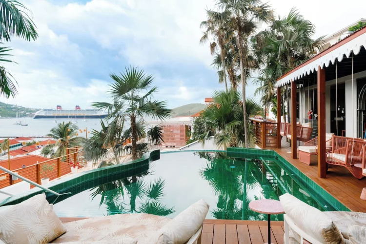 Отель The Pink Palm Hotel - Adults Only 3 звезды, адрес на карте Сен-Томас, 2114 Crystal Gade, с описанием номеров и доступностью онлайн бронирования на площадке ВашОтель.RU , цены проживания и удобства.