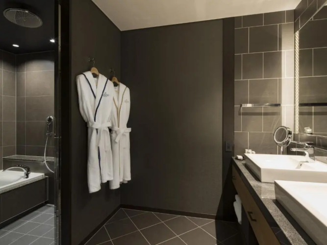 В номере вы найдёте телевизор, мини-бар и халат. Перечисленные услуги есть не во всех номерах.