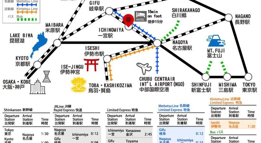 Отель Ichinomiya City Hotel, адрес на карте Итиномия, 2-21-1 Izumi, с характеристиками номеров и доступностью онлайн бронирования на ресурсе vashotel.ru , стоимость проживания и удобства.