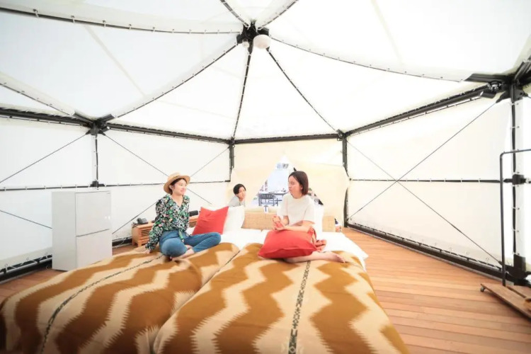 В коттедже для глэмпинга и тенте для глэмпинга с собственной террасой (Gramping Tent with Private Terrace) могут быть установлены 4 односпальные кровати. Максимальная вместимость номера — 4 взрослых. Во всех городах префектуры Фукуока взимается налог в размере 200 JPY с человека за ночь. За ребенка в возрасте от 4 до 12 лет требуется дополнительный сбор. Сбор взимается по прибытии.