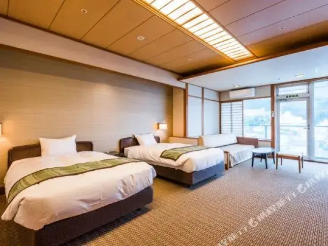 Отель Ooedo Onsen Monogatari Ito Hotel New Okabe 3 звезды, адрес на карте Ито, 2-1-1, Sakuragicho 414-0013 Japan, с характеристиками номеров и возможностью онлайн бронирования на площадке ВашОтель.RU , цены проживания и удобства.