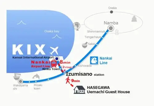 Отель HASEGAWA Uemachi Guest House 3 звезды, адрес на карте Изумисано, 1-3-3 Uemachi, с описанием номеров и доступностью онлайн бронирования на площадке vashotel.ru , стоимость проживания и удобства.