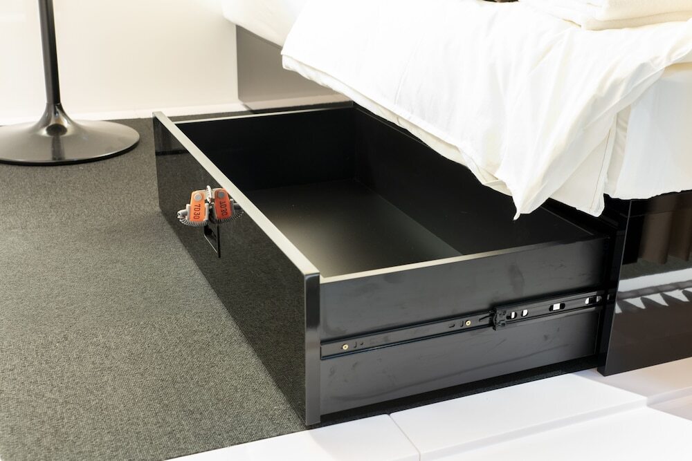В капсулах нет окон и ванной, только кровать. Ванные комнаты находятся на цокольном этаже.