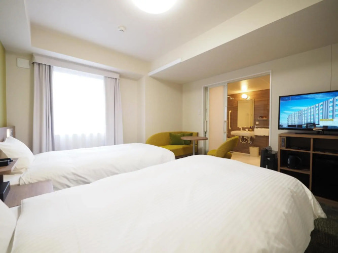 Отель Tabino Hotel Kurashiki Mizushima 3 звезды, адрес на карте Курасики, 4-25 Mizushima Nishi Tokiwa-cho, с характеристиками номеров и возможностью онлайн бронирования на площадке vashotel.ru , цены проживания и удобства.