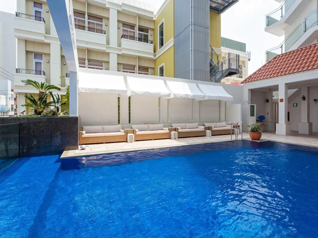 Отель Okinawa Kariyushi Resort Exes Naha 4 звезды, адрес на карте Наха, 1-11-5 Izumisaki, с описанием номеров и доступностью онлайн бронирования на площадке vashotel.ru , цены проживания и удобства.