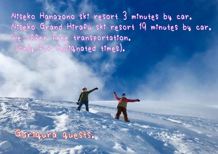 Гостям предоставляются бесплатные услуги трансфера (по предварительному бронированию). Расписание трансфера указано ниже. Гостям предоставляются бесплатные услуги трансфера (по предварительному бронированию). Трансфер по прибытии: - от станции Куттян (Kuchan) — в 16:30 и 18:01; - от информационного центра горнолыжного курорта Niseko Grand Hirafu — в 16:00. Трансфер при проживании более 2 ночей: - до станции Куттян (Kuchan), горнолыжного курорта Niseko Hanazono и горнолыжного курорта Niseko Grand Hirafu — в 08:20. Обратный трансфер: от станции Куттян (Kuchan) — в 16:30, от горнолыжного курорта Niseko Hanazono — в 16:15, от горнолыжного курорта Niseko Grand Hirafu — в 16:00. Трансфер при отъезде: - до станции Куттян (Kuchan) и горнолыжного курорта Niseko Grand Hirafu — в 08:20.