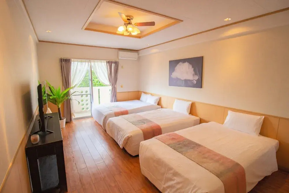 Подходящий вариант для бюджетного отдыха — отель «Green Garden Hills» находится в Окинава-Сити. Этот отель располагается неподалёку от центра города.