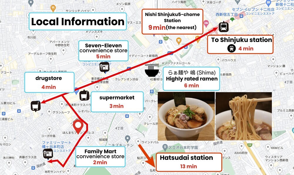 Отель Compact 2DK apt in west Shinjuku, адрес на карте Токио, 4-48-2, Honcho, с характеристиками номеров и возможностью онлайн бронирования на сайте vashotel.ru , стоимость проживания и удобства.