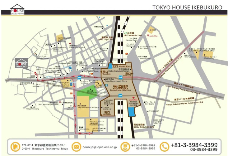 адрес на карте Токио, 2-20-1 Ikebukuro, с описанием