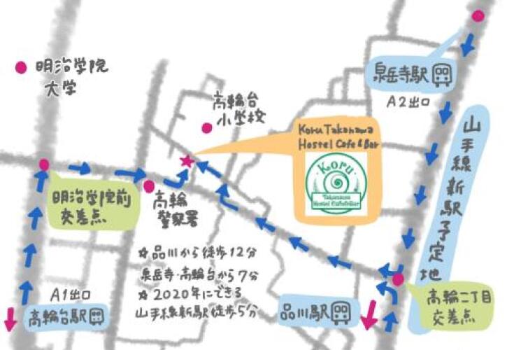 Отель Koru Takanawa Gateway Hostel Cafe&Bar, адрес на карте Токио, 2-6-7 Takanawa, с характеристиками номеров и доступностью онлайн бронирования на сайте ВашОтель.RU , цены проживания и удобства.