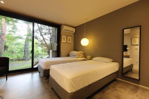 Отель Fuji Kimien, адрес на карте Яманакако, 山梨県山中湖村山中 1410, с характеристиками номеров и доступностью онлайн бронирования на ресурсе vashotel.ru , стоимость проживания и удобства.