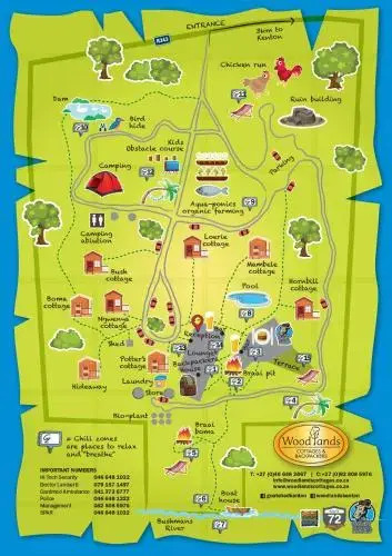 Отель Woodlands Cottages and Backpackers, адрес на карте Пляж Kenton on Sea, Grahamstown Road R343, с описанием номеров и доступностью онлайн бронирования на сайте ВашОтель.RU , стоимость проживания и удобства.