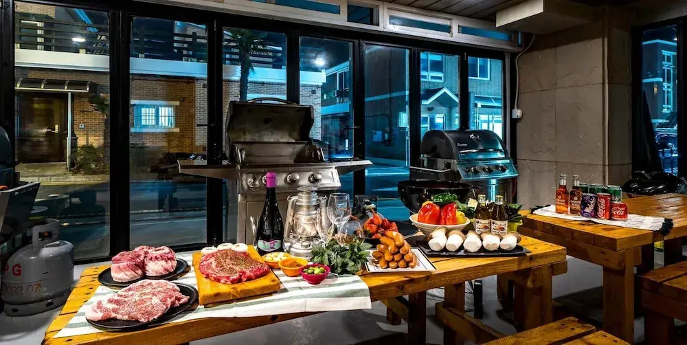 - Public barbecue Gas grill barbecue The cost is KRW 20,000 for 2~4 people, KRW 40,000 for 5~8 people, and KRW 60,000 for 8 people or more. Preparation time: Charcoal grill delivery time (5:00 PM-10:00PM) Hours of use: 6:00-8:00PM and 8:00–10:00PM (maximum of 2 hours per team) -Available in case of rain or winter. -Never bring a charcoal grill with you can't bring it with you.