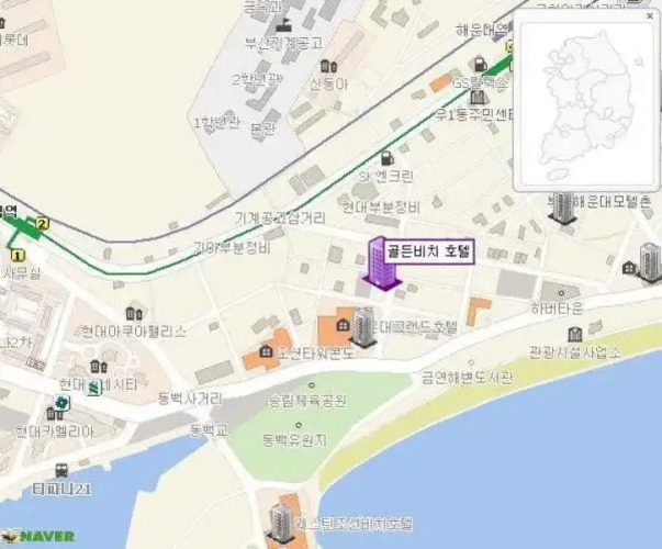 Отель Golden Beach 2 звезды, адрес на карте Пусан, 644-5, Udong, с характеристиками номеров и доступностью онлайн бронирования на сайте ВашОтель.RU , цены проживания и удобства.