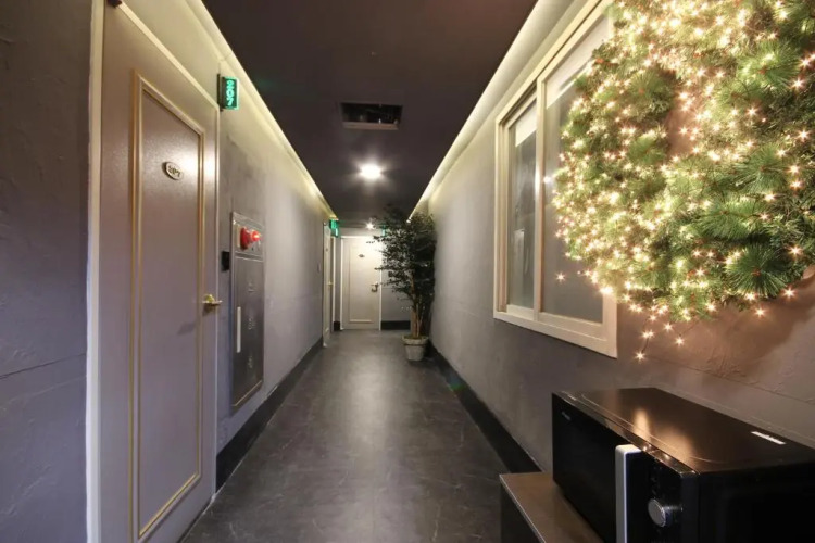 Удобно для гостей с ограниченными возможностями: на верхние этажи гостей поднимает лифт. А ещё в распоряжении гостей прачечная, пресса, сейф и консьерж. Персонал отеля говорит на английском и корейском.