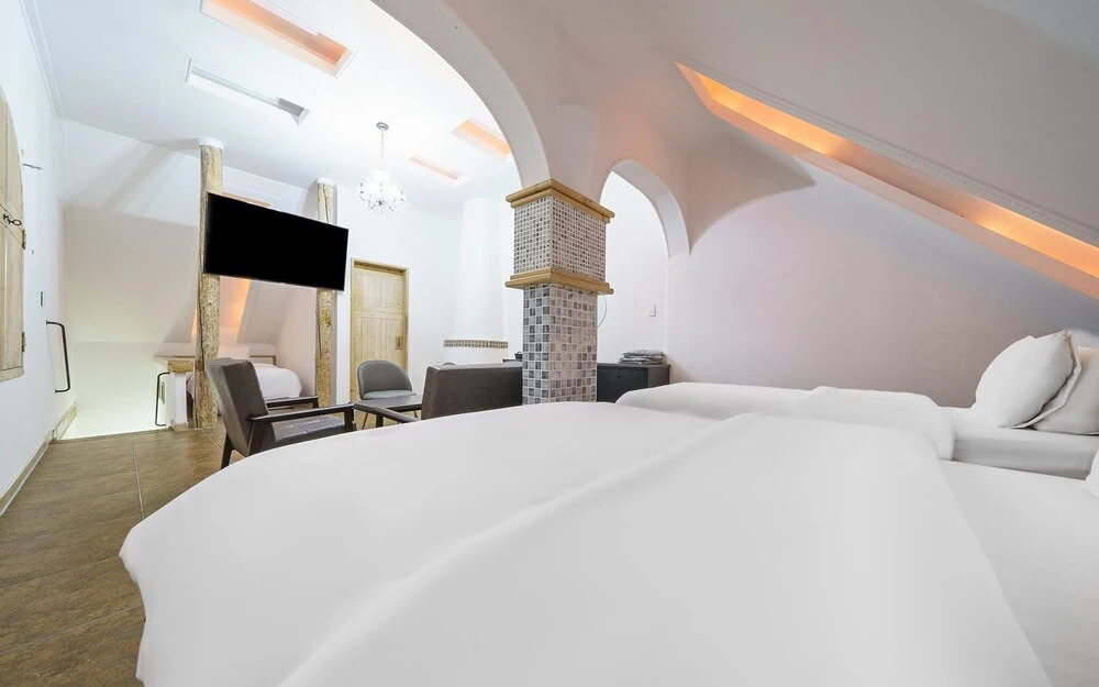 В номере вы найдёте телевизор. Перечисленные услуги есть не во всех номерах.