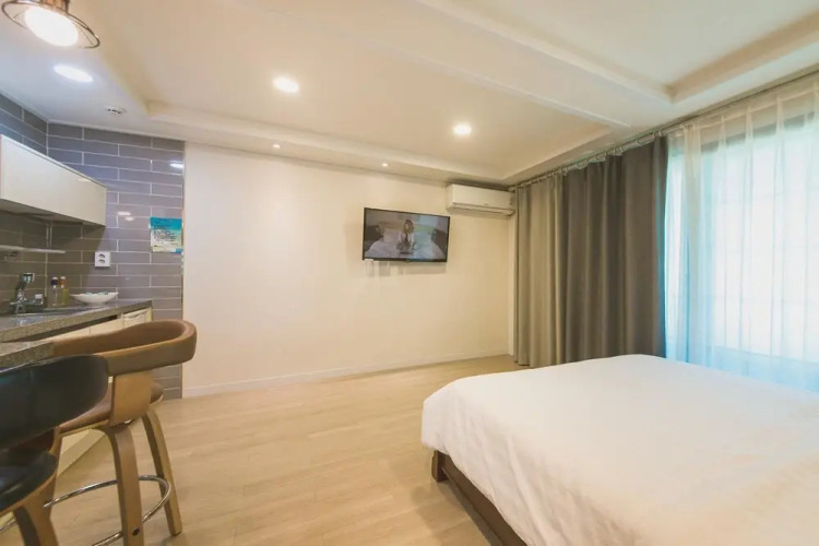 Бюджетный вариант для активного отдыха — отель «Gyeongpo East Pension» находится в Гангнеунге. Этот отель расположен в 7 км от центра города.