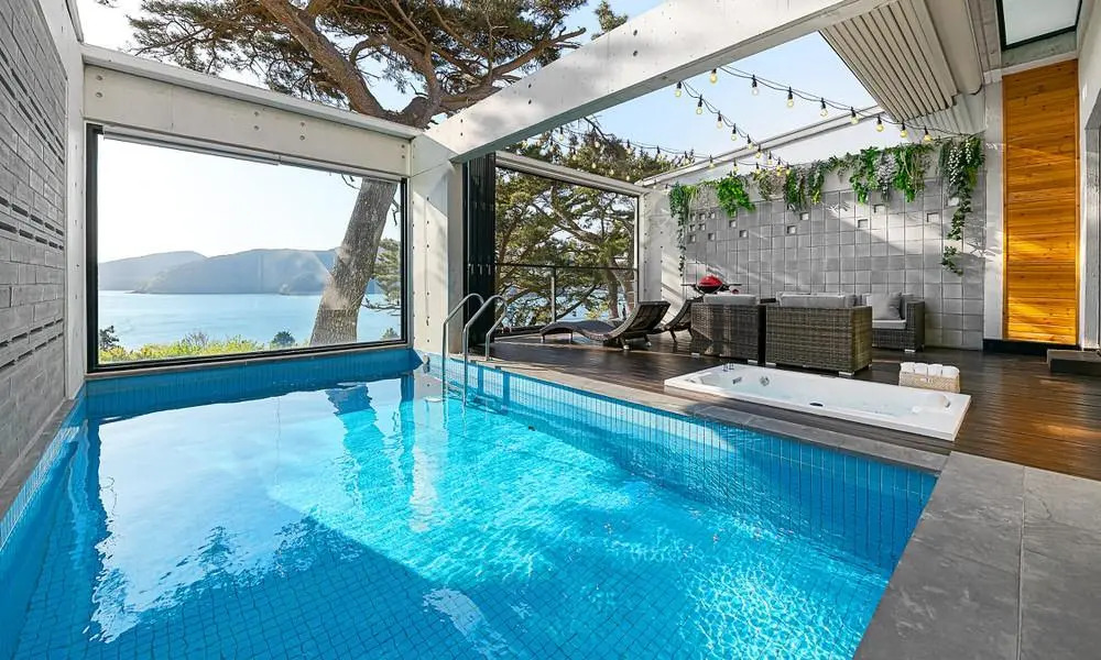 Отель Haejium poolvillla pension, адрес на карте Кодже, 38, Jeosannyuchon-gil, Dosan-myeon, Tongyeong-si, Gyeongsangnam-do, Korea, с описанием номеров и правом онлайн бронирования на сайте ВашОтель.RU , стоимость проживания и удобства.