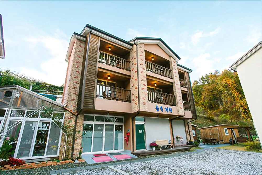 Отель Gyeongju Forest Garden Pension 3 звезды, адрес на карте Кенджу, 381-1, Seowang-gil Yangnam-myeon, с характеристиками номеров и возможностью онлайн бронирования на сайте vashotel.ru , стоимость проживания и удобства.