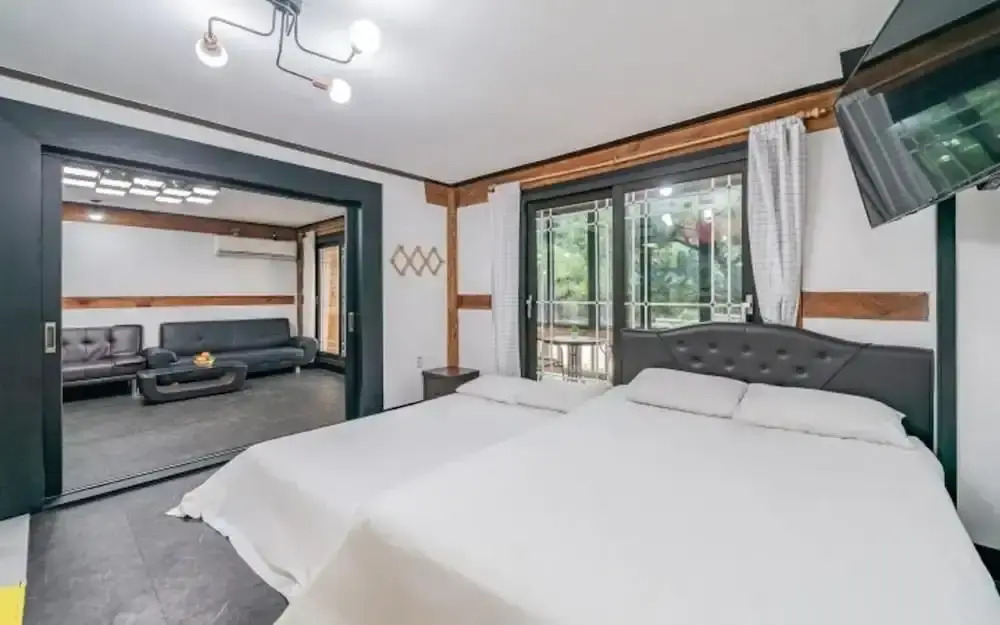 Ищете себе уголок без соседей за стенкой? Вилла «Gyeongju Palace Pool Villa Pension» располагается в Кенджу. Эта вилла находится в 23 км от центра города.