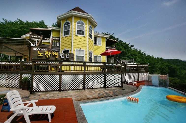 Отель Yellowstar Pension 2 звезды, адрес на карте Кенджу, 175-10, Mulcheonan-gil Cheonbuk-myeon, с описанием номеров и доступностью онлайн бронирования на ресурсе vashotel.ru , цены проживания и удобства.