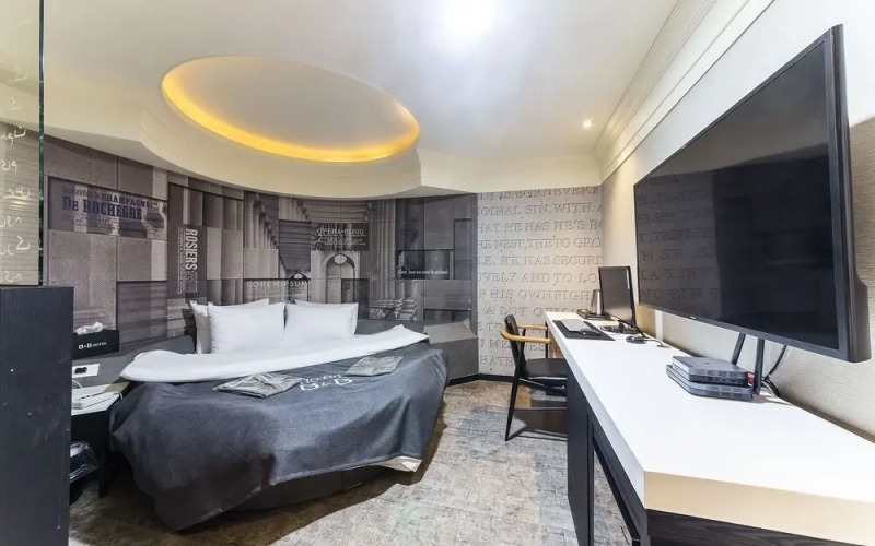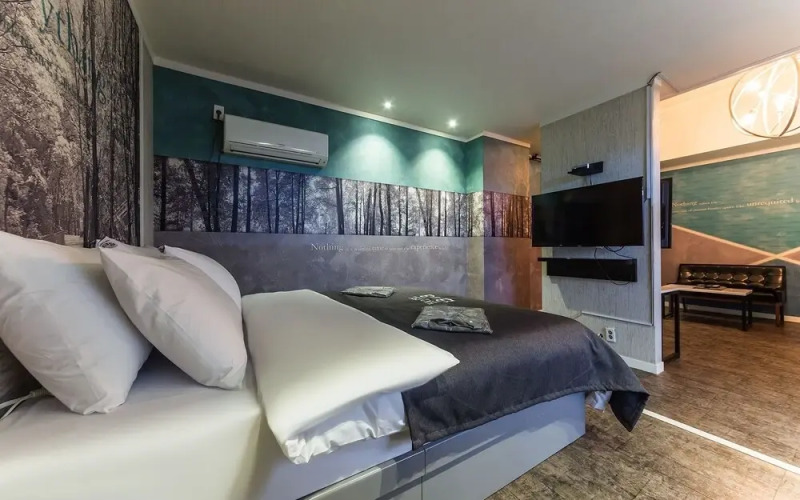 Номер уютно обставлен и оснащён необходимым, чтобы отдохнуть после долгого и насыщенного дня. Имеются телевизор. Оснащение зависит от выбранной категории номера.