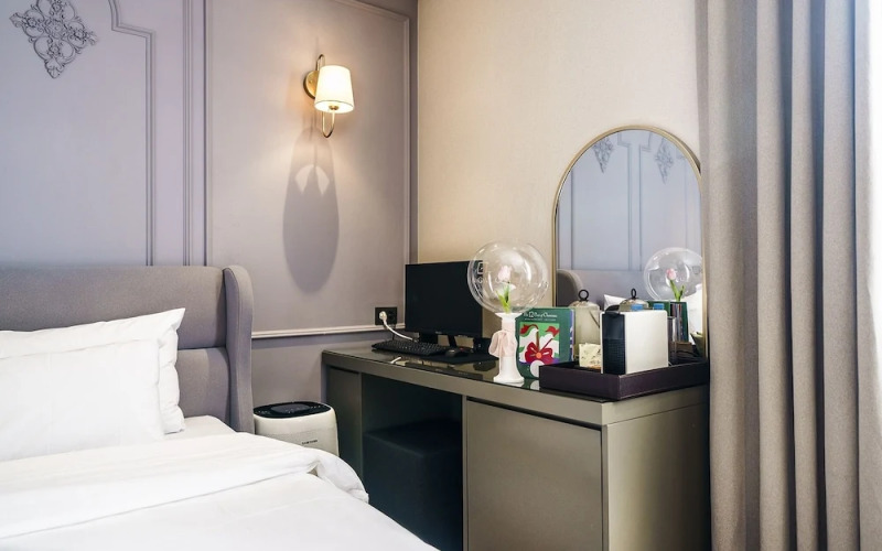 В номере вы найдёте телевизор и мини-бар. Оснащение зависит от выбранной категории номера.