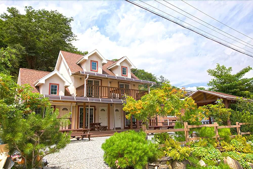 Отель Songgye Terrace Punggyeong Pension 2 звезды, адрес на карте Чечхон, 14, Mireuksonggye-ro 5-gil, Hansu-myeon, с характеристиками номеров и возможностью онлайн бронирования на ресурсе vashotel.ru , цены проживания и удобства.