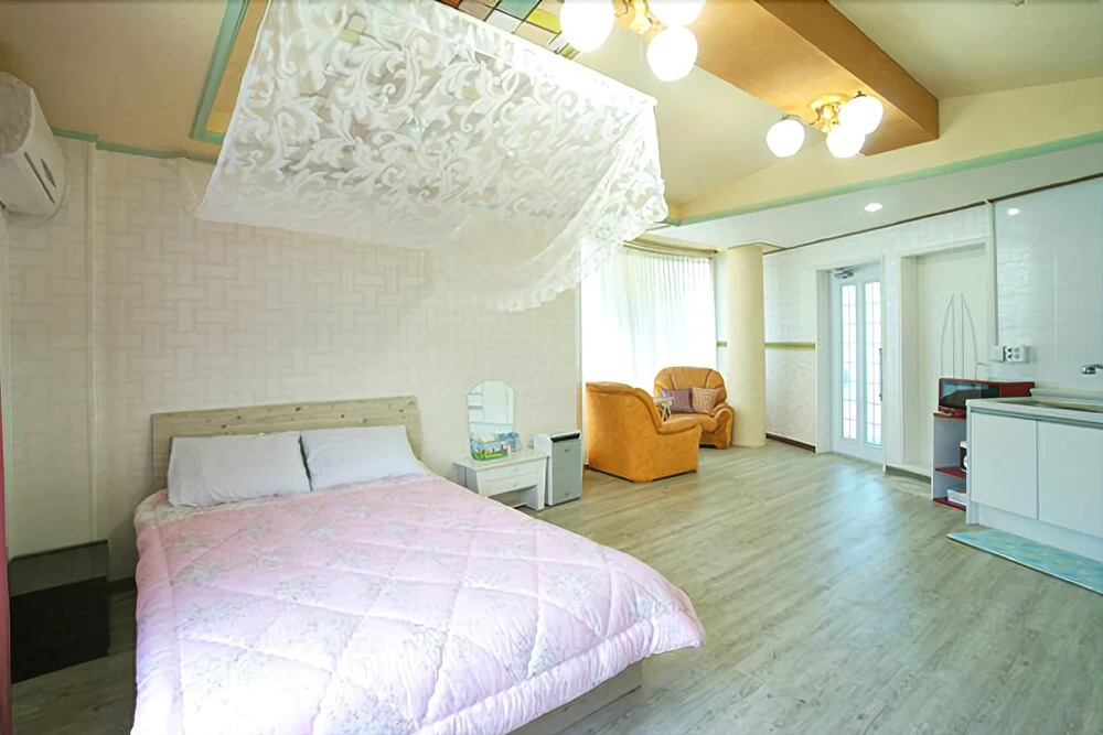 Отель Jejuromance Pension 2 звезды, адрес на карте Чеджу, 41, Gueomdong 1-gil Aewol-eup, с описанием номеров и возможностью онлайн бронирования на сайте vashotel.ru , цены проживания и удобства.