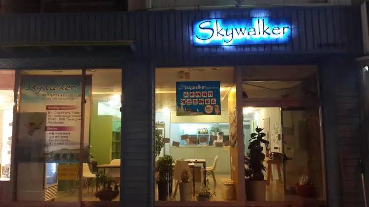 Отель Skywalker Guesthouse - Hostel, адрес на карте Чеджу, 11, Gwandeok-ro, 13-Gil, с описанием номеров и правом онлайн бронирования на сайте vashotel.ru , цены проживания и удобства.
