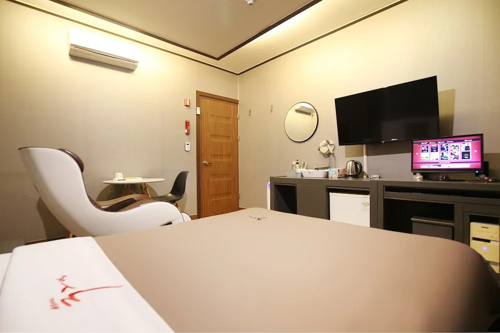 Отель Motel 32days, адрес на карте Муджу, 43-2, Gyesan-ro, Yeongdong-eup, с характеристиками номеров и возможностью онлайн бронирования на сайте vashotel.ru , цены проживания и удобства.