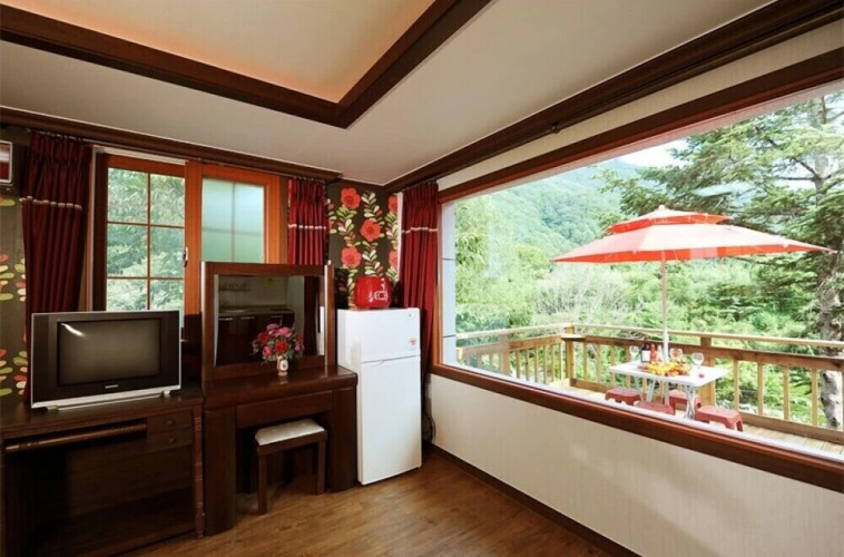 Отель Shiny Town Pension 4 звезды, адрес на карте Муджу, 129-19, Gucheondong 1-ro, Seolcheon-myeon, Muju-gun, Jeollabuk-do, Korea, с описанием номеров и доступностью онлайн бронирования на сайте vashotel.ru , стоимость проживания и удобства.