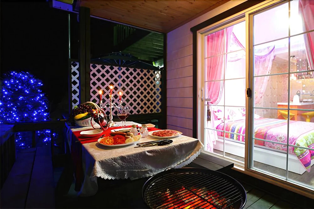 Среди развлечений на территории — площадка для барбекю. Персонал апартаментов говорит на корейском.