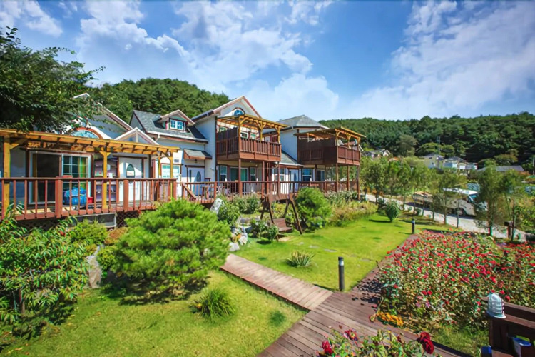 Отель Hoengseong Rose of Sharon Pension 3 звезды, адрес на карте Пхёнчан, 34-17, Duwon 1-gil Dunnae-myeon, с описанием номеров и доступностью онлайн бронирования на сайте vashotel.ru , цены проживания и удобства.