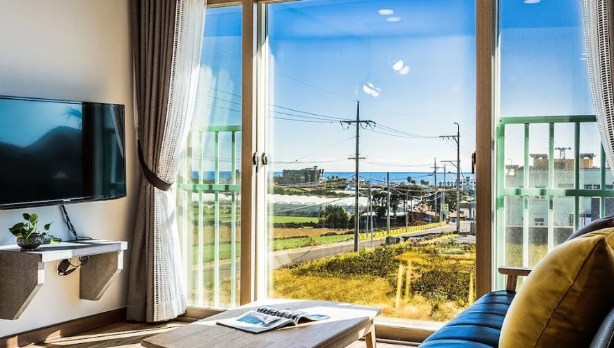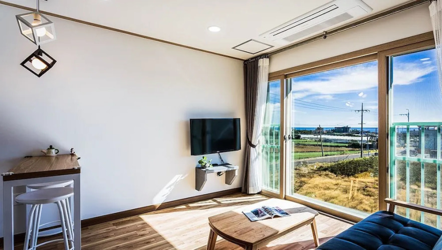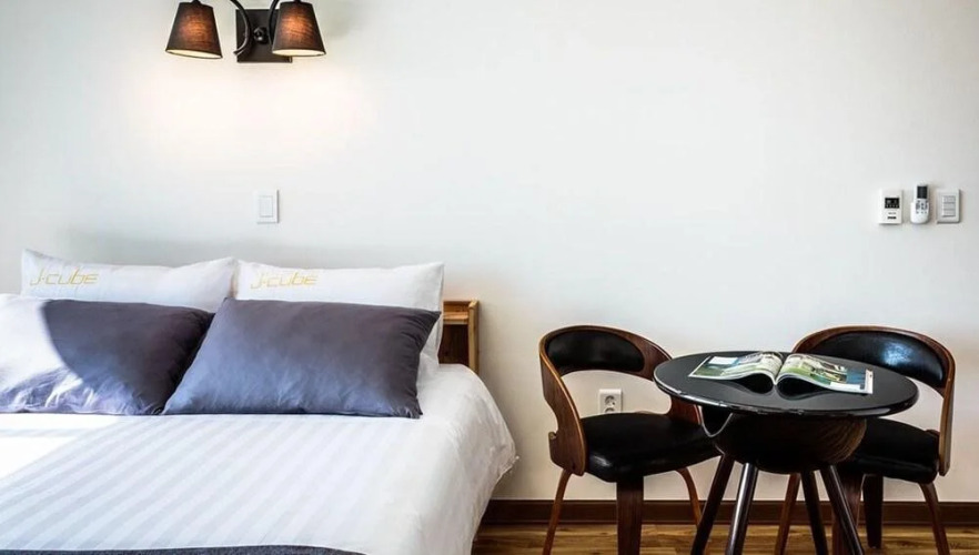 Отель J Cube, адрес на карте Согвипхо, 55 Daepyeonggamsan-ro, Andeok-myeon, Seogwipo, с описанием номеров и доступностью онлайн бронирования на ресурсе vashotel.ru , цены проживания и удобства.