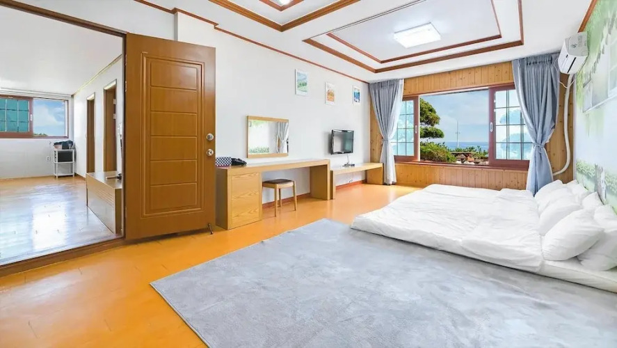 Отель Jeju Badaaehyanggi Pension 3 звезды, адрес на карте Согвипхо, 254-6, Songakgwangwang-ro 177beon-gil, с характеристиками номеров и доступностью онлайн бронирования на ресурсе vashotel.ru , цены проживания и удобства.